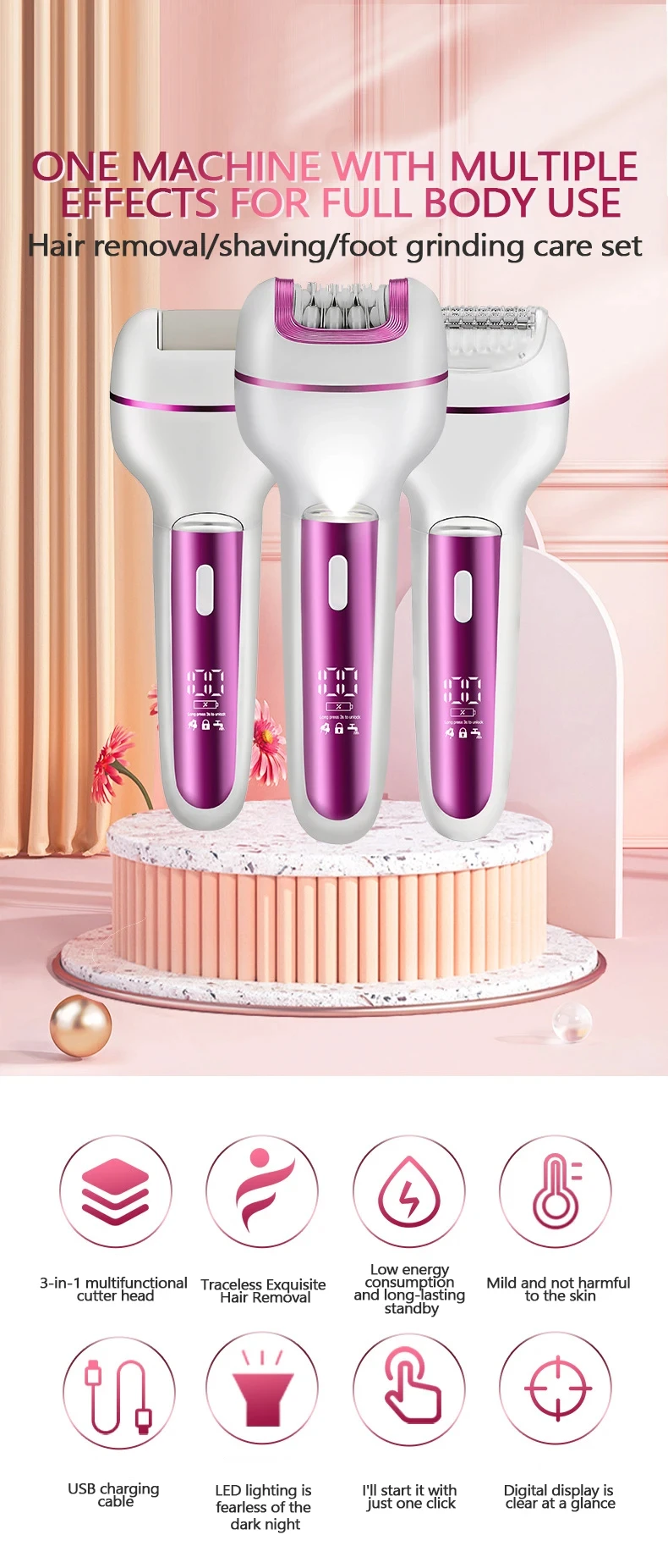HOMEFISH 3-In-1 Women Epilator Shaver