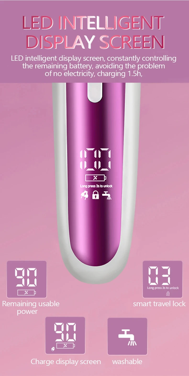 Chargeable 1.5 hours, fast charging timeline/cordless operation, 90 minutes, runtime, support USB charging