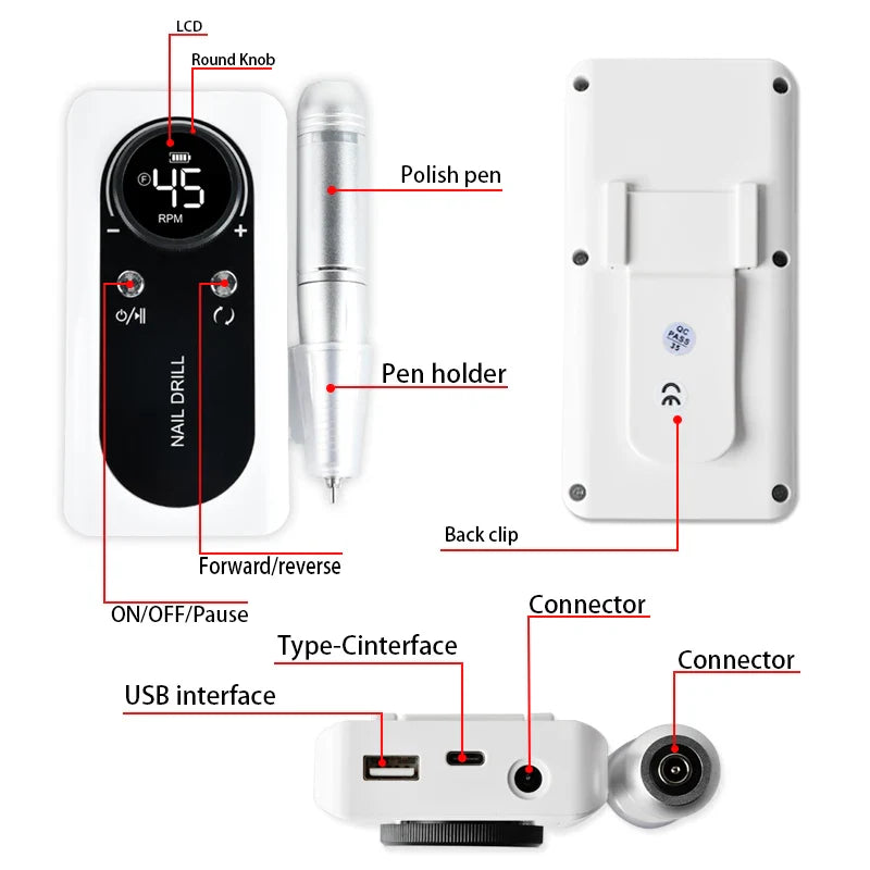 Experience professional-grade nail care with the Rechargeable 45000RPM Electric Nail Drill. Designed for precision and efficiency, this high-speed drill offers up to 45,000 RPM for smooth shaping, filing, and polishing. Its rechargeable battery ensures cordless convenience, allowing uninterrupted use anywhere. Ideal for both salon professionals and home enthusiasts, this tool delivers consistent power with quiet, vibration-free operation to enhance your nail grooming routine.